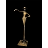 The slightly inclined stance, with one arm extended and the other resting on her hip, conveys both confidence and relaxation. The fluid and elongated lines of the sculpture enhance the sense of harmony and lightness. The timeless bronze material gives the piece a rich texture and subtle reflections, bringing the figure to life under varying light angles.
