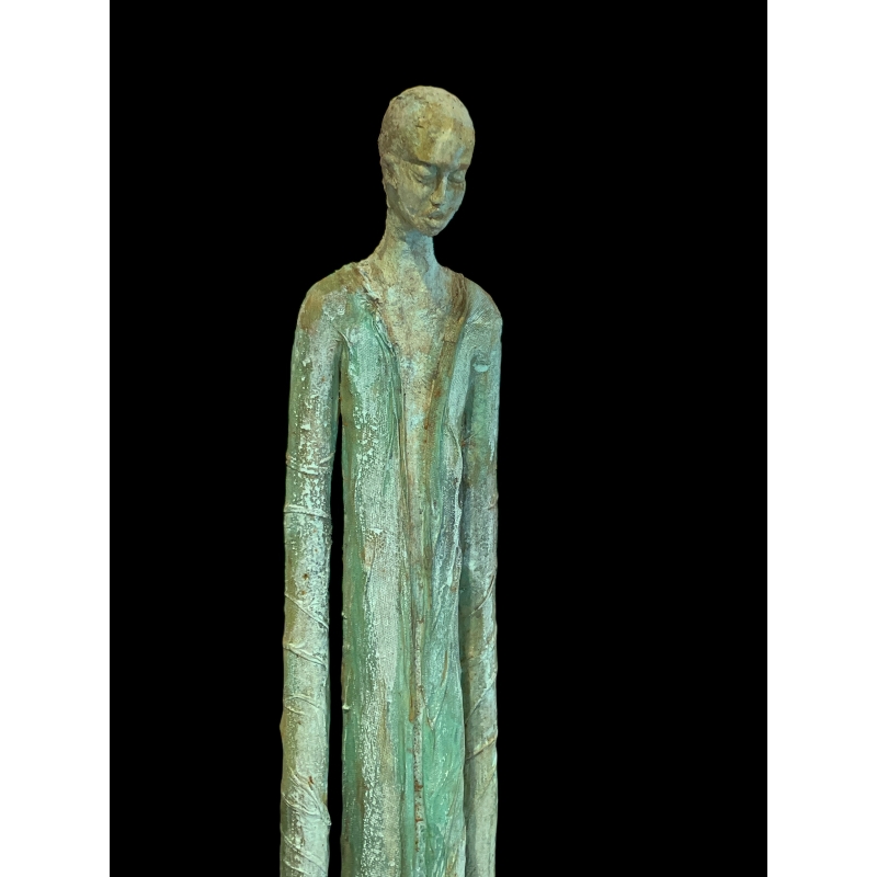 The Introspection sculpture by Béatrice Fernando, made from stoneware and cement, is a striking piece of art through its simplicity and visual impact. With its 161 cm height, it immediately captures attention with its graceful silhouette and calm, introspective expression. Béatrice Fernando, a renowned contemporary sculptor, masterfully combines the rawness of the material with the delicacy of human emotion, creating perfect harmony between form and sentiment.