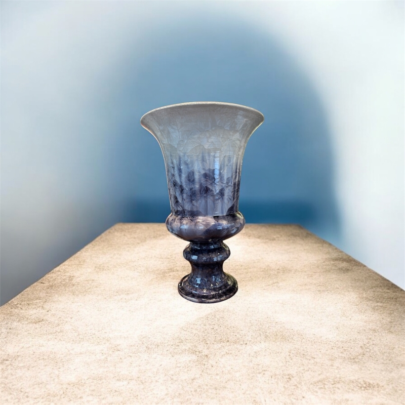 The amethyst hue lends the vase an almost spiritual dimension. Historically associated with contemplation, wisdom, and inner balance, this color absorbs light as much as it reflects it, giving the piece a quiet, meditative presence. The vase becomes a focal point within space—a moment of stillness, depth, and resonance.