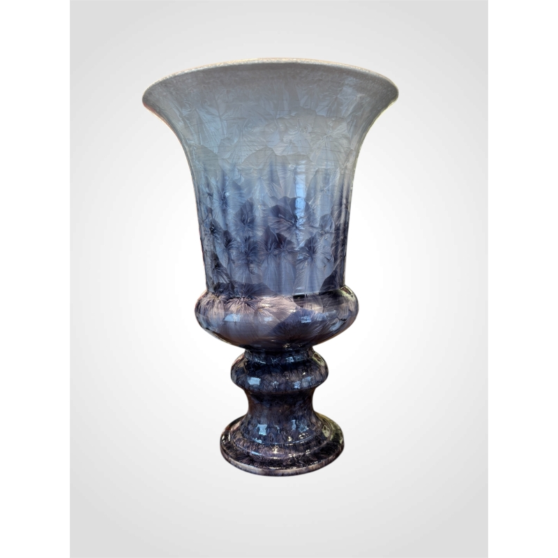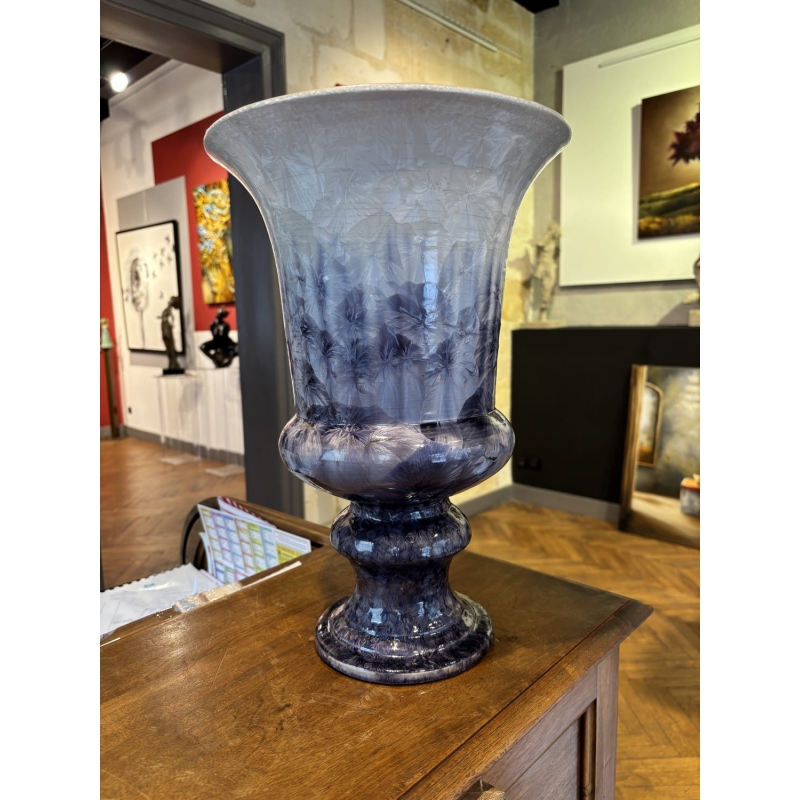 Within the field of contemporary ceramic art, Philippe Sutter occupies a distinctive position. His mastery of crystalline glazes on porcelain combines rare technical precision with deep artistic sensitivity. Here, the classical Médicis form engages in dialogue with a nearly cosmic surface, evoking galaxies, mineral landscapes, and interior worlds shaped by fire and time.