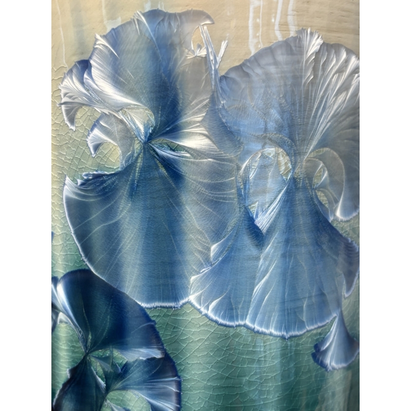 Thus, Médicis Aligned 108 is a one-of-a-kind artwork, impossible to reproduce. The viewer’s gaze moves freely across the surface, following crystalline lines, areas of density, and zones of calm. Light plays a fundamental role: depending on its angle and intensity, it reveals either the depth of the Indian blue or the almost nacreous shimmer of the crystals.