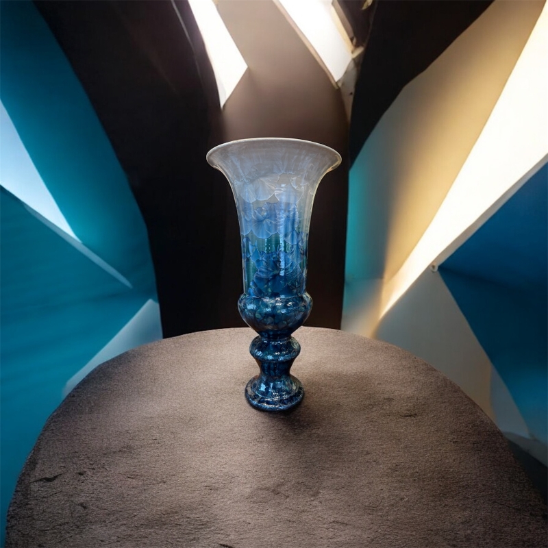 Historically associated with travel, contemplation, and spiritual depth, Indian blue lends this vase a meditative dimension. It evokes distant skies, deep oceans, and interior landscapes alike. The classical Médicis form enters into dialogue here with a nearly cosmic surface, where matter appears traversed by time and fire.