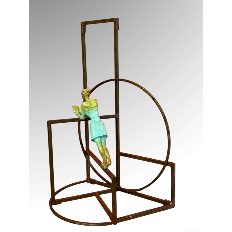 Certaines sculptures semblent saisir l’instant exact où une idée naît, s’étire, s’affirme. Persuasion, œuvre d’Artigas Planas, appartient à cette famille rare où le geste devient philosophie, où la posture raconte un cheminement intérieur. Devant cette composition, le regard se laisse entraîner dans une dynamique douce, une avancée silencieuse où le bronze et le fer se répondent comme deux forces complémentaires.