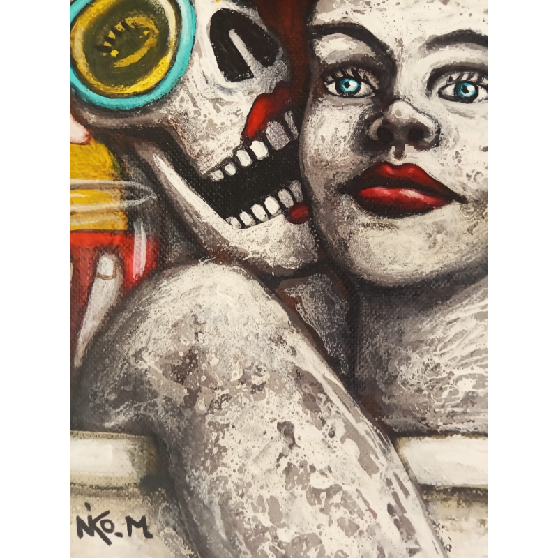 Cette toile, à la fois sensuelle et critique, s’inscrit pleinement dans la démarche de Nicolas Monjo, dont l’art conjugue narration, symbolisme et satire visuelle. Son œuvre attire autant par la qualité de sa composition que par sa capacité à créer du sens à travers le chaos.