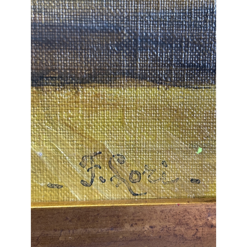 Huile sur toile – œuvre restaurée avec cadre à la feuille d’or