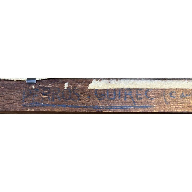 Perros-Guirec, station portuaire majeure de la côte de granit rose, a inspiré de nombreux artistes au tournant des XIXe et XXe siècles. Cette peinture s’inscrit dans cette tradition en proposant une vision réaliste et poétique du port, loin de toute idéalisation excessive. Elle témoigne de la vie maritime d’autrefois, du rythme des marées et du travail des pêcheurs bretons.